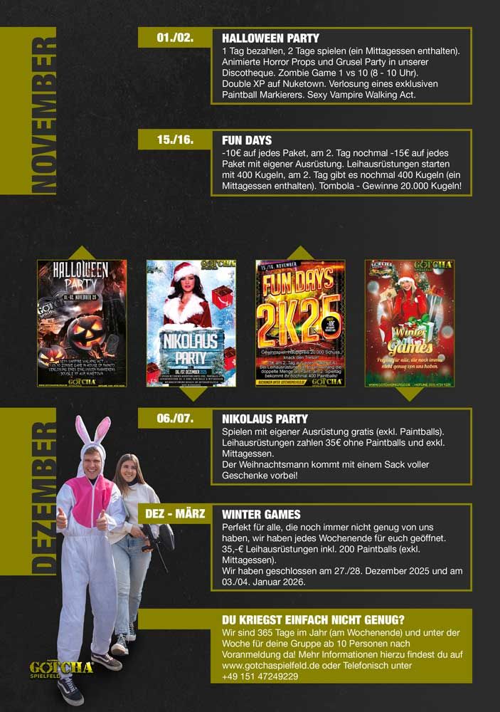 - Jeder weitere Spieler bezahlt 55€ ohne Paintballs