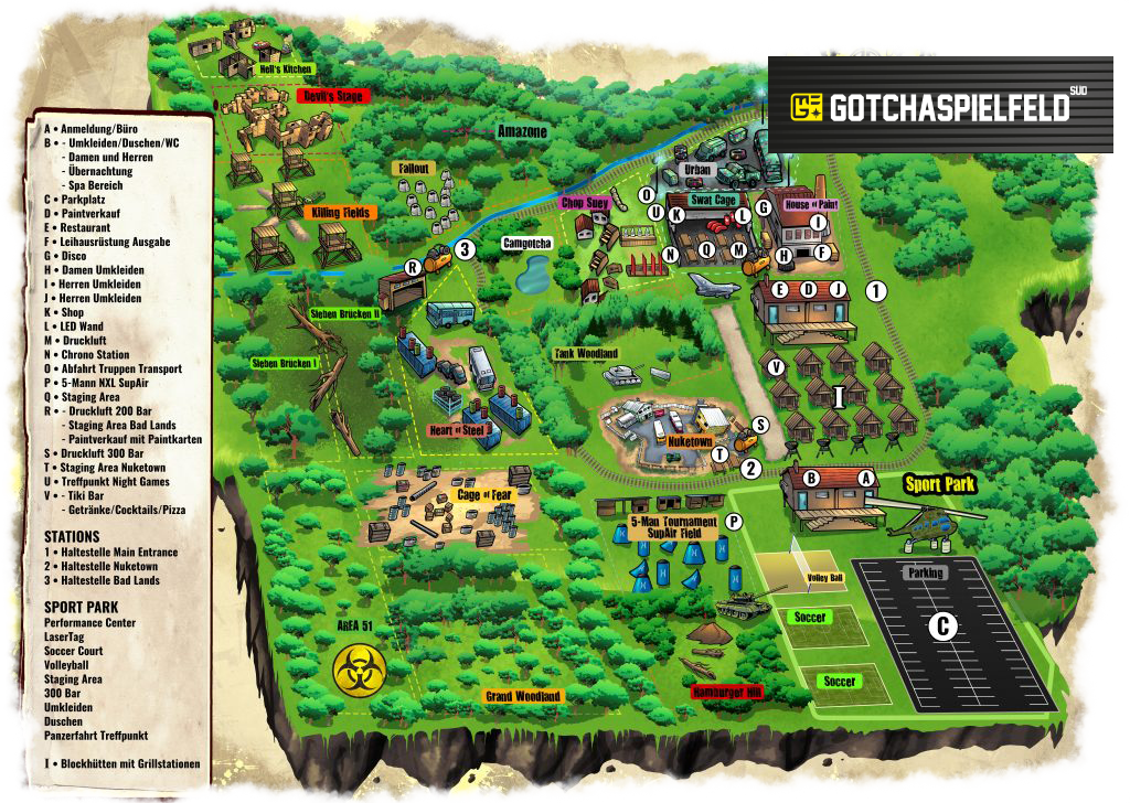 Gotchaspielfeld Süd ist die Paintball Erlebnisanlage der Superlative. 600 Betten, Großraumdisco, Restaurants, Panzer... Hier gibt es alles für den perfekten Junggesellenabschied oder die unvergeslliche Firmenfeier.
